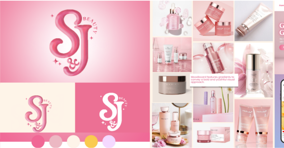 With a focus on quality and luxury at a reasonable price, S&J Beauty’s new visual direction is refined to be cleaner, more feminine, timeless, and recognizably distinct. It chooses to abandon the cluttered, chaotic, and at times, confusing direction of the past that often branched into a wide variety of directions, which left S&J Beauty without a clear and distinct identity. The brand’s new visual direction chooses to embrace fonts that are soft and round, lively colors that pop, gentle gradients, and a metallic shine to further emphasize the brand’s dedication to premium quality while still maintaining its familiar feminine appeal. This direction’s goal is unmistakable: to highlight the brand, its narratives, and products more clearly both locally and globally.